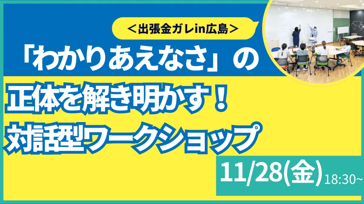 2025年11月28日(金)、広島市の叡啓大学にて、注目の対話ワークショップ「『わかりあえなさ』の正体を解き明かす」を開催します。このイベントは、普段は静岡・浜松で運営されている金ガレによるもので、地域でのニーズに応じて特別に広島で行われるものです。