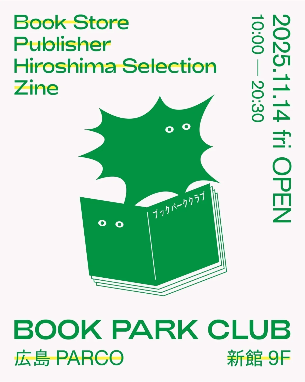 広島市中心部、まさに文化の発信地である広島PARCOに、待望の書店『BOOK PARK CLUB』が2025年11月14日(金)に常設オープンします。書店が減少する時代において、各地の魅力ある出版社や書店から選び抜かれた本が一堂に集まるこの場所は、本好きにとっての新たな聖地となること間違いなしです。