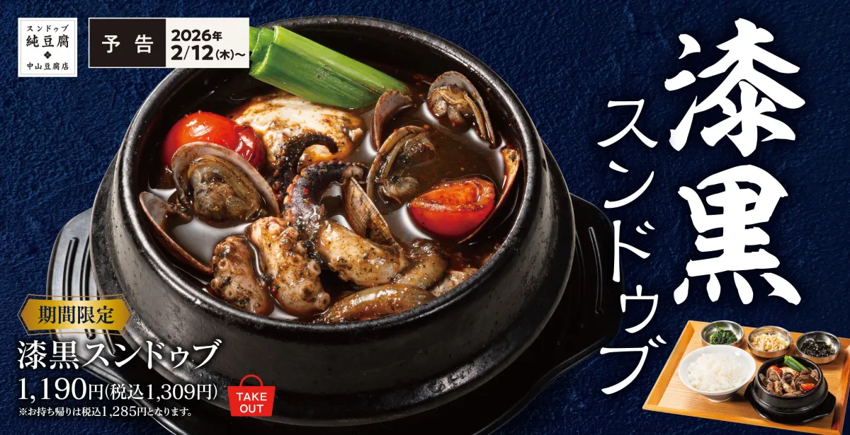 2026年2月12日、東京都にあるスンドゥブ専門店「中山豆腐店」にて、注目の新メニュー『漆黒スンドゥブ定食』が登場します。これは、イカスミを基盤にした新しいスタイルのスンドゥブで、従来の唐辛子を使った赤いスンドゥブとは一線を画した一皿です。どういった味わいか、早速ご紹介します。