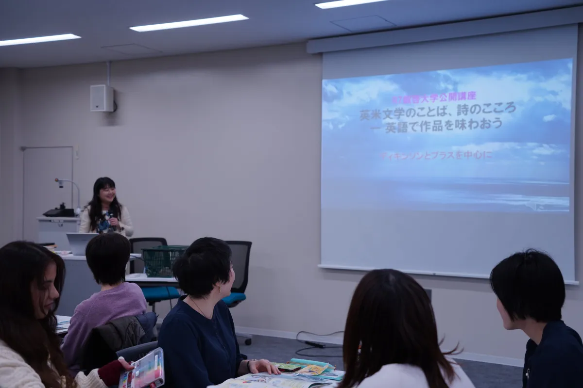 広島市中区に位置する叡啓大学は、11月22日(土)に公開講座「英米文学のことば、詩のこころ ― 英語で作品を味わおう」を実施しました。本講座では、上杉裕子教授の指導のもと、英詩の基本構造を学ぶことができ、参加者は作品を声に出して読むことによって、その響きやリズムを体験し、詩が持つ奥深い意味や感情を探ることを目的としました。