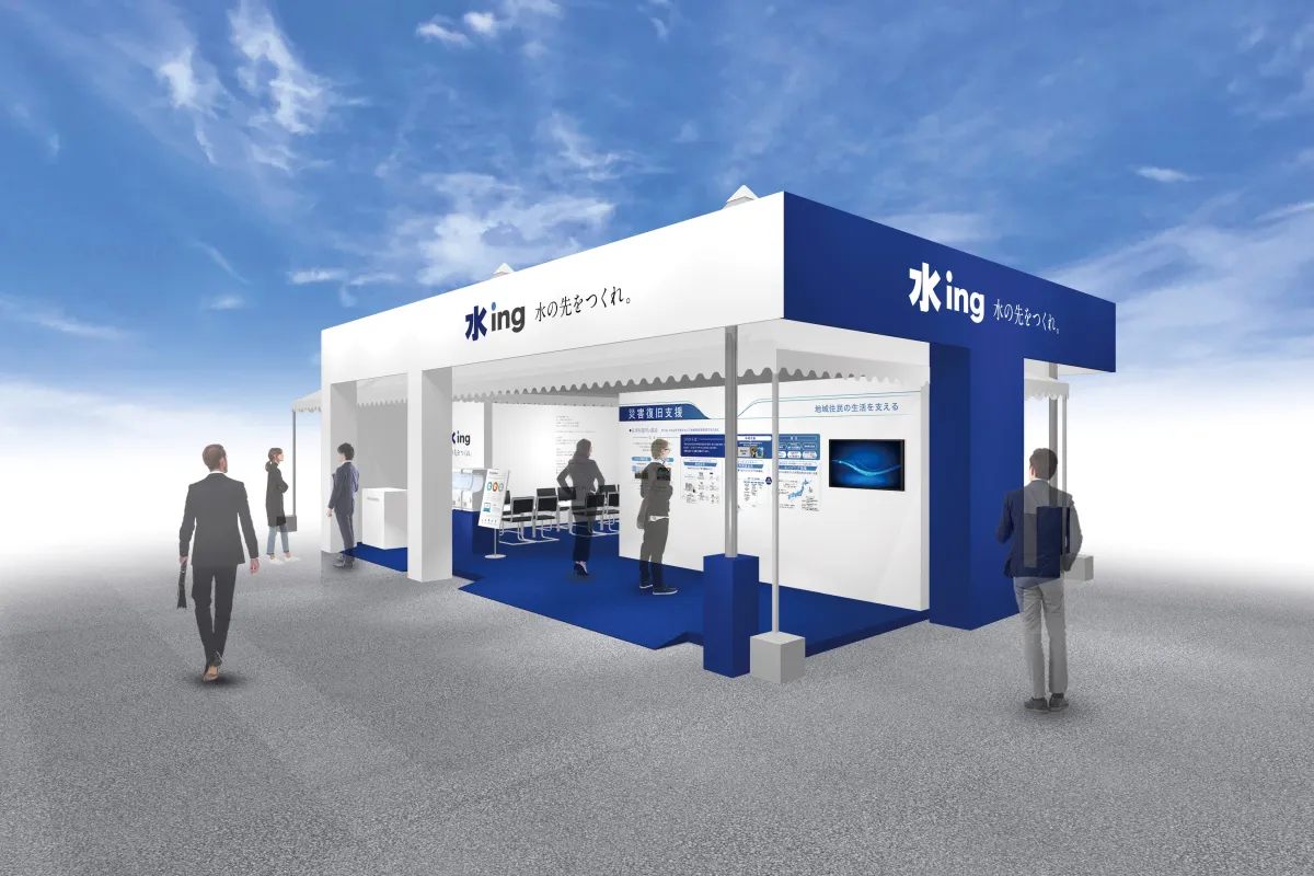 水ingグループは、人口減少や施設の老朽化、労働力の不足、さらに自然災害の頻発といったさまざまな課題に応えるため、独自の技術や提案を展示します。特に、災害復旧に特化した支援や官民連携による地域の課題解決に力を入れています。