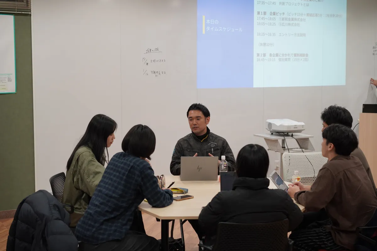 オフラインで参加した10名の学生たちは、企業の代表者による熱意あるプレゼンに真剣に耳を傾け、終了後は活発な意見交換や質疑応答が行われました。学生たちは、実際のビジネス現場に触れることで、自らの学びをより深める貴重な機会として捉えているようでした。