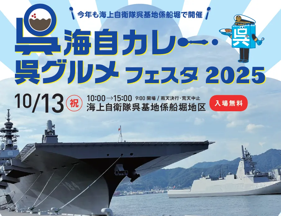 真の呉文化を感じられる「呉海自カレー・呉グルメフェスタ2025」。ぜひこの特別な日を、友人や家族とともにお楽しみください!